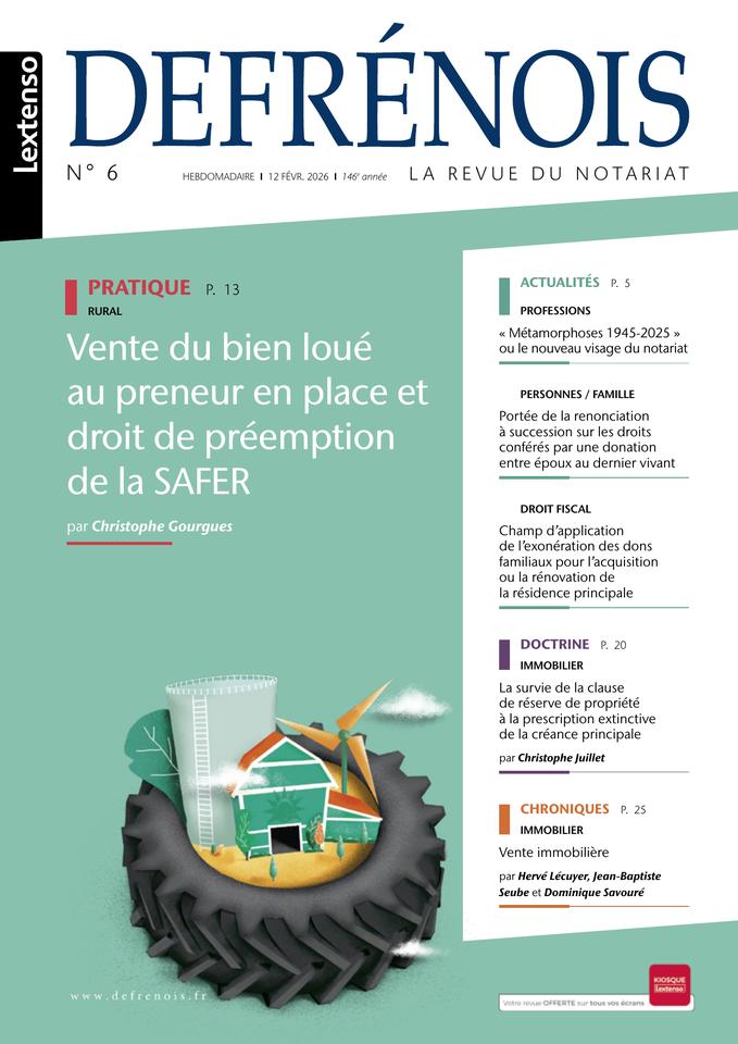 Chaque semaine (depuis le lancement de la nouvelle formule Hebdo le 7 septembre 2017), le Defrénois décrypte pour les professionnels du notariat les dernières évolutions législatives et jurisprudentielles dans tous leurs grands domaines d’expertise : ACTES COURANTS/IMMOBILIER - FAMILLE/PATRIMOINE - ENTREPRISE - FISCAL - PROFESSION - RURAL. À la fois revue d’information et revue scientifique de réflexion et d’imagination, le Defrénois a été repensé pour simplifier leur quotidien : appliquer de nouvelles règles et adopter de nouvelles pratiques dans de nouveaux contextes sociétaux.
