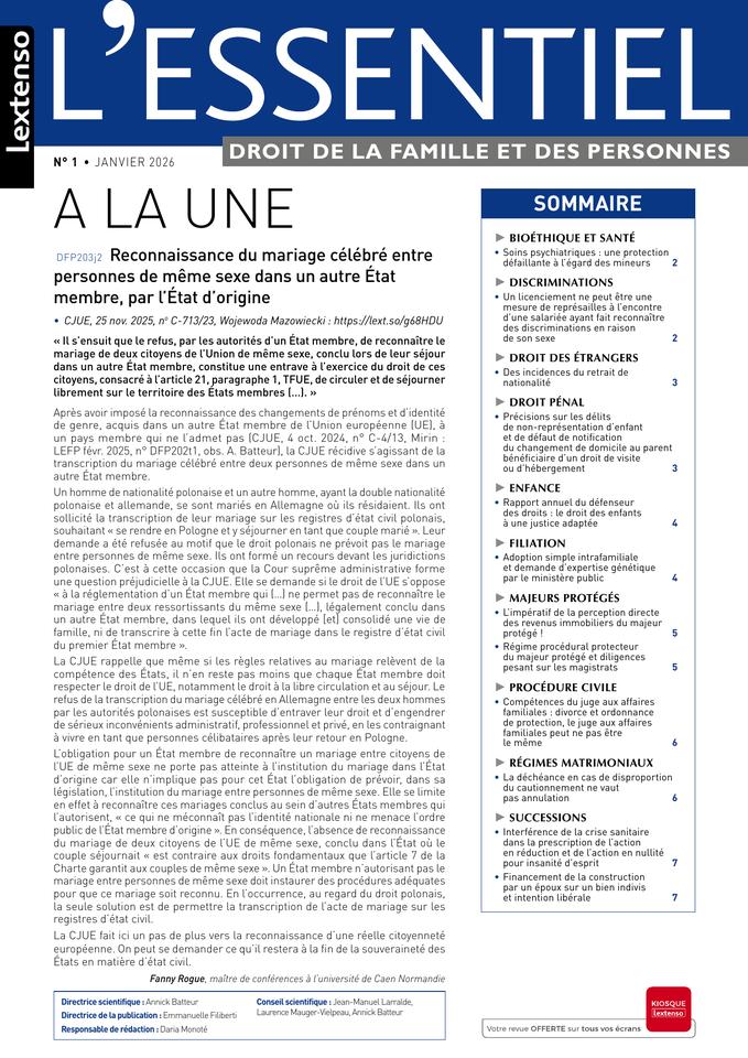 Reconnaissance du mariage célébré entre personnes de même sexe dans un autre État membre, par l’État d’origine