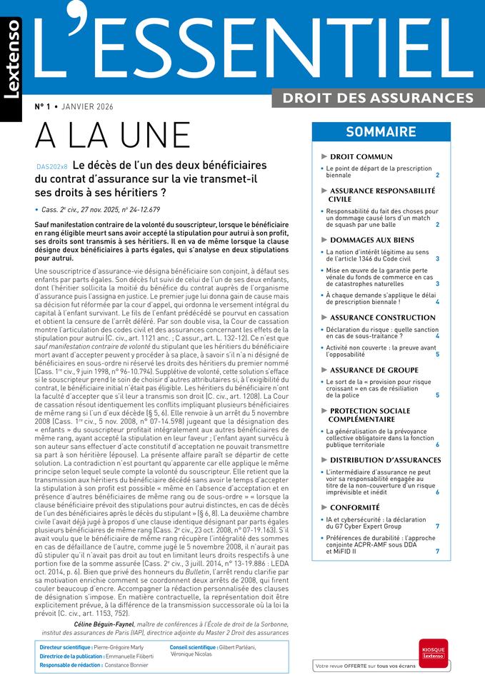 Le décès de l’un des deux bénéficiaires du contrat d’assurance sur la vie transmet-il ses droits à ses héritiers ?
