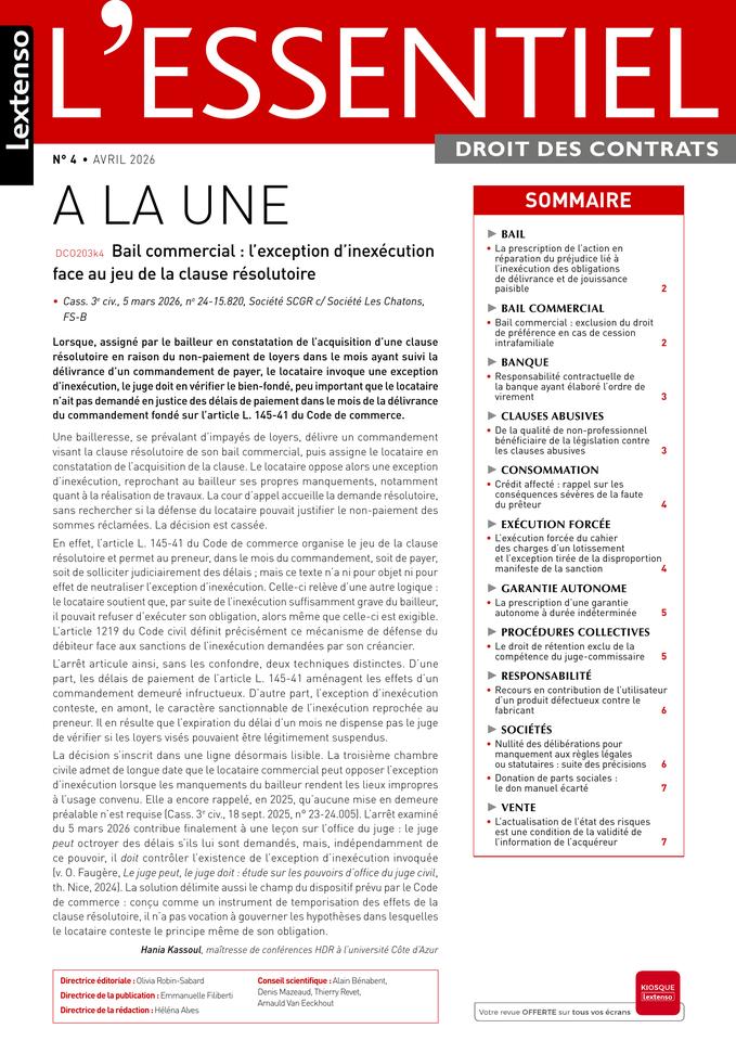 Bail commercial : l’exception d’inexécution face au jeu de la clause résolutoire